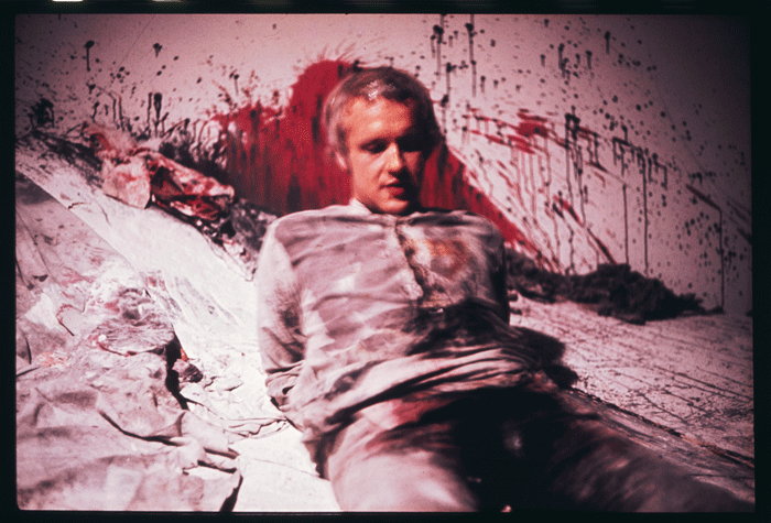 The show will explore the way ‘action’ painters after Pollock worked in the 1950s, 1960s and beyond, from Nikki de St Phalle shooting paint from a gun onto the canvas, to artists of the Japanese Gutai such as Shozo Shimamoto and Viennese Actionists such as Gunter Brus and Hermann Nitsch. In parallel, the exhibition will also show how paint has been used performatively in explorations of role-play, surface and illusion. Since the 1960s, artists have applied paint as a kind of make-up or drag to their own body or face, engaging with the politics of identity, gender and sexuailty. Moving beyond the canvas to works captured in other media, A Bigger Splash will include videos, such as Bruce Nauman’s Art Make-Up 1971, photographs, such as Cindy Sherman’s self-portraits disguised as strange characters, and films, such as the costumed fantasies of Jack Smith’s Flaming Creatures 1962 with its heavily made-up cast of characters.