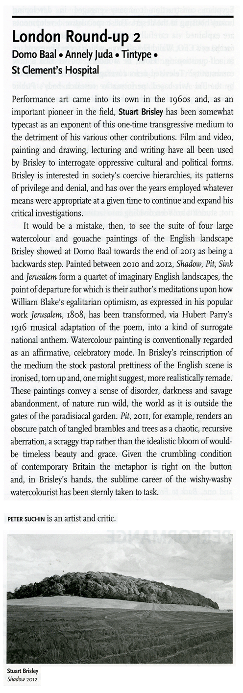 Exhibition review by Peter Suchin, Art Monthly, February 2014